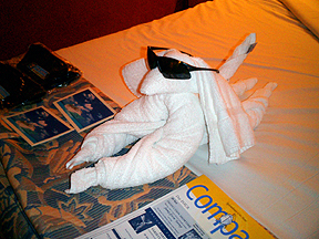 Our cute towel puppy dog wearing Bill's sunglasses. |