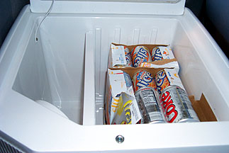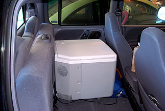 Loading up the car. One of the guys at Bill's work was nice enough to let us borrow his car refrigerator. I was SO glad. It kept Bill from buying one. |