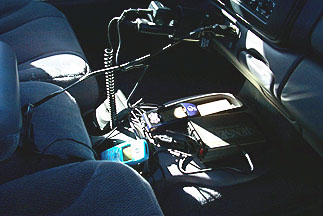 The front seat equipment included 2 cell phones, a GPS and a power inverter in case we needed to plug anything in that didn't have a cigarette lighter adapter. We mostly used it to charge up the laptop. |