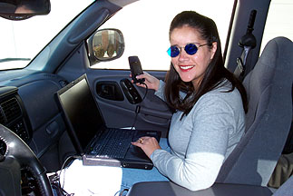 Here I am. The GPS hooked up to the laptop which had software that would track us and tell me exactly where we were. It really helped with shortcuts. |