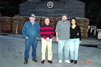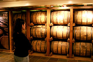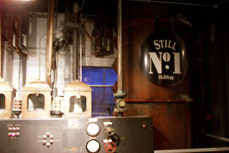 A barrel display. The barrels are burned on the inside and that's what makes the liquor brown. It's clear when it comes out of the still. |