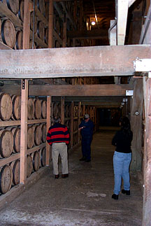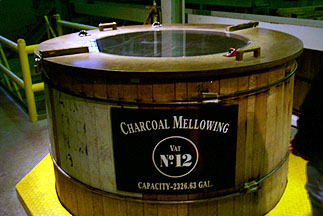 This is the charcoal filtering room. As soon as we walked in the building, the whole place smelled like Jack Daniels. Our tour guide told us to lean over and he fanned the top so we could smell what was inside. I swear, for hours later, everything Bill and I smelled, smelled like Jack Daniels. The smell was seared in to our noses and lungs. It eventually wore off. |