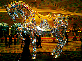 This beautiful mirrored horse was in the lobby. |