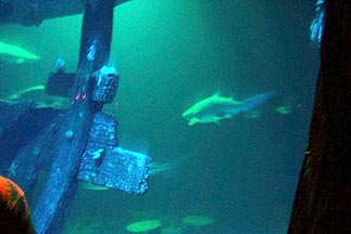 The big shark part was cool. You stand inside a wrecked ship and look out the breaks in the hull to see the sharks. |