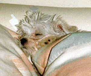 get up. She'd get water and then lay down again. She didn't eat all day Sunday which isn't too unusual. She's always been kind of a finicky eater. Monday she didn't eat either. We knew it was bad. Monday night Bill took her to the emergency vet to see if they could give her an IV or something to make her feel better. We've been treating Daphney for heart failure for the last 3 years. Even though she wasn't coughing, we thought maybe that was part of her lethargy. The vet checked her out and said that she was dying. Her temperature was a little more than 10 degrees below normal and he suspected her internal organs were beginning to shut down. He said she probably felt like she had the flu. He recommended putting her to sleep. We asked what the alternatives were and he said they could run tests and see if they could prolong her life. Bill and I talked and decided, at 14 years old, we didn't want her to go through any more tests and we didn't want to wait for anything to be painful. Bill was with her when she passed. He said she was very peaceful. We miss her terribly. |